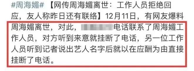 因为消息说的有理有据,时间地点人物目击者都有,细节很真实,加上周海媚的工作人员还拒接媒体电话,一切都让人觉得很不妙。