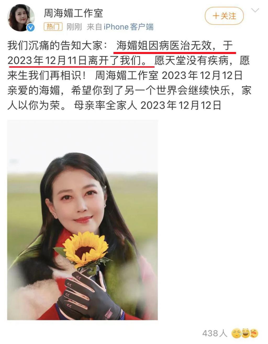 说实话昨天半夜有人突然爆出周海媚去世的消息时,就有不祥预感了。