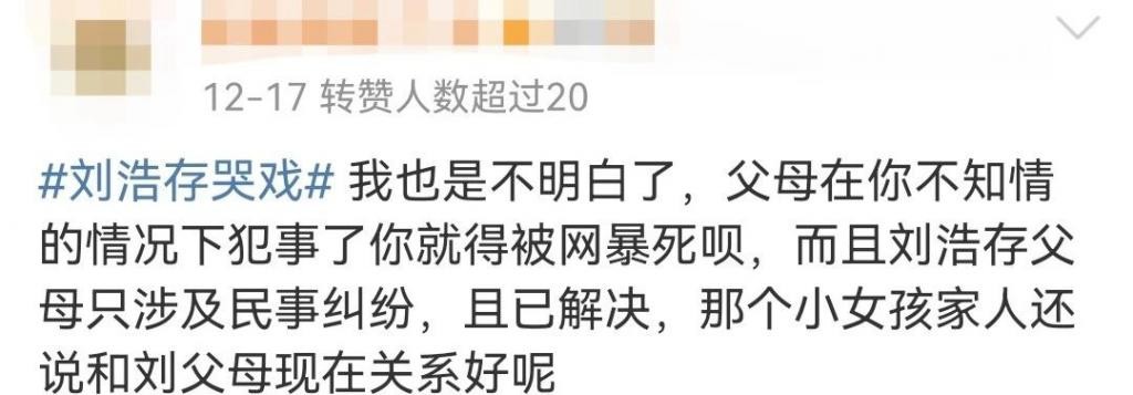 有人觉得刘浩存享受了父母的财力和资源,就该父债子偿。