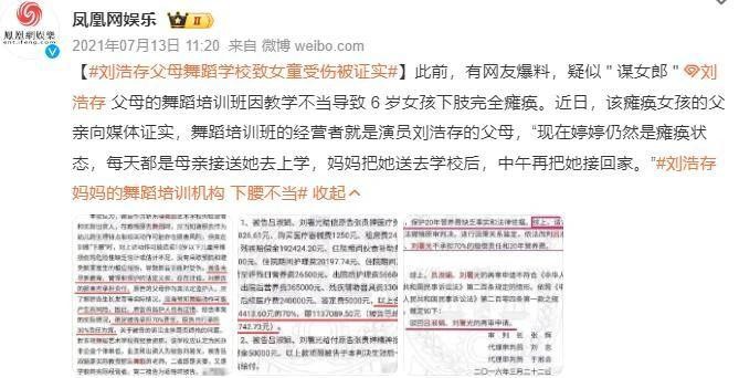 在刘浩存出道不久后,便有网友爆出其父母开设的舞蹈学校,因下腰不当导致6岁女孩高位瘫痪。