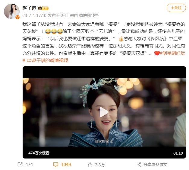 《长风渡》播出时,赵子琪饰演的婆婆江柔拒当男宝妈,把儿媳看得比自家亲儿子还重要,手把手教柳玉茹赚钱做生意,让粉丝对着国民老公白敬亭都顾不上犯恋爱脑了,反而追着赵子琪喊起了婆婆,大发儿媳脑。