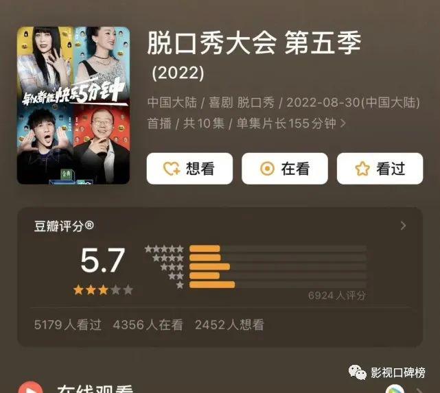 作为中国乐坛的大姐大,节目组请她来也是想为扩展充实,增添一些噱头。可偏偏好巧不巧,同样是最近这几年来国内喜剧综艺做得比较好的《脱口秀大会 5》,一样也请了那英。然而,那英的出现却让这档前四季一直平均分保持在 7 分、8 分左右的《脱口秀大会》直接拉至了 5 分左右。