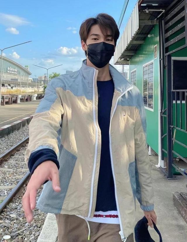 黄色和蓝色的拼接外套,少年感满分。松垮的造型加上阳光的气质,其实还真是挺男友风的。迎面走来有种女友视角的味道,谁能不心动呀!这样的一个帅气大狗狗形象,可真是太符合偶像剧中的男主形象啦。