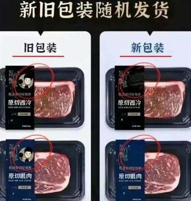 东方甄选自营品牌牛排新旧包装的变化