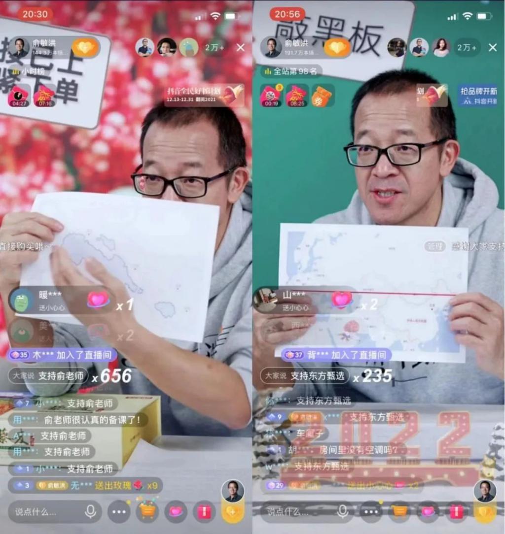 俞敏洪在带货首秀中,拿着地图讲解地理知识
