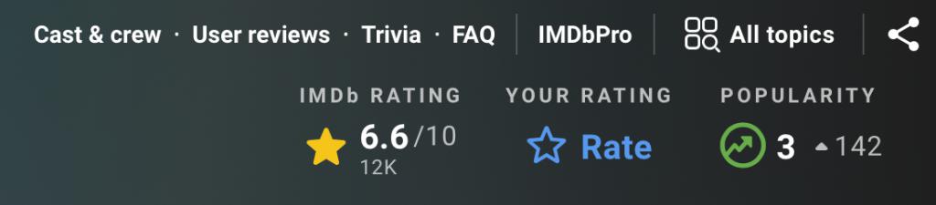 因此,IMDb6.6的评分,豆瓣仅有6.0的评分。