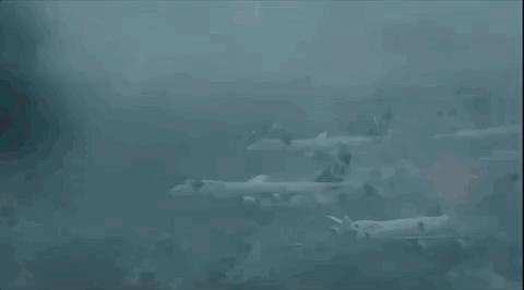 第一个是当超巨型龙卷风刮过机场的停机坪,飞机被卷上了天,实现了另一种方式的 " 起飞 "。