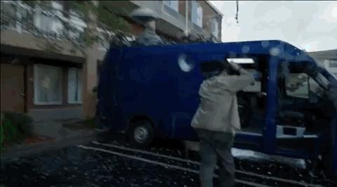 比如追风人团队发现天上下起了冰雹,他们从房间所在的二楼看见冰雹到冲到楼下进入车内。