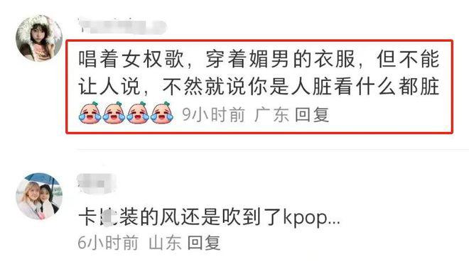 正如网友所说, ( G ) I-DLE 的新歌可谓 " 又当又立 ",唱着支持女性的歌,穿着讨好男粉的衣服,只要网友吐槽,那就是不尊重她们的穿衣自由了。