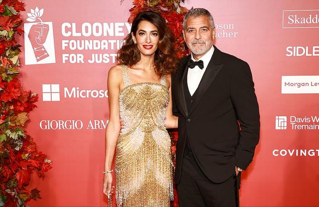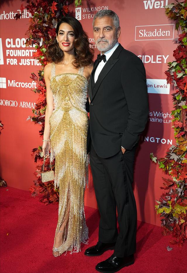 乔治克鲁尼带着娇妻闪耀红毯!律师妻子穿流苏小金裙好惊艳,真美