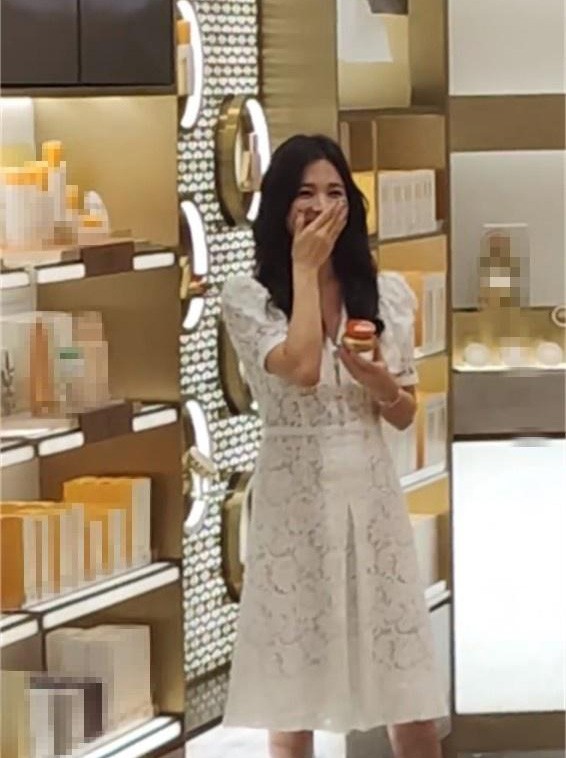 更让人没想到的是,在活动内场时,宋慧乔正在展示商品宣传拍照,这时,有一位女粉丝大声说了一句韩语,顿时引宋慧乔转头一看,还露出了微笑。女粉丝接着大声说着韩语,宋慧乔被成功逗笑,捂着嘴偷笑,眉目间的忧郁也消失殆尽,取代的都是欢乐温馨。粉丝十分热情,说着韩语成功地把宋慧乔逗笑了好几次,乔妹一边展示商品,还一边注意着一旁的粉丝,笑得合不拢嘴。