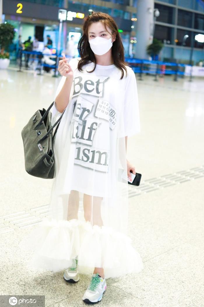 这种白纱拼接的连衣裙,颜值不过关的女孩真的就不要尝试了。