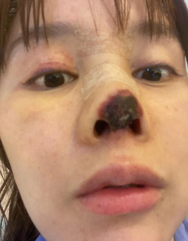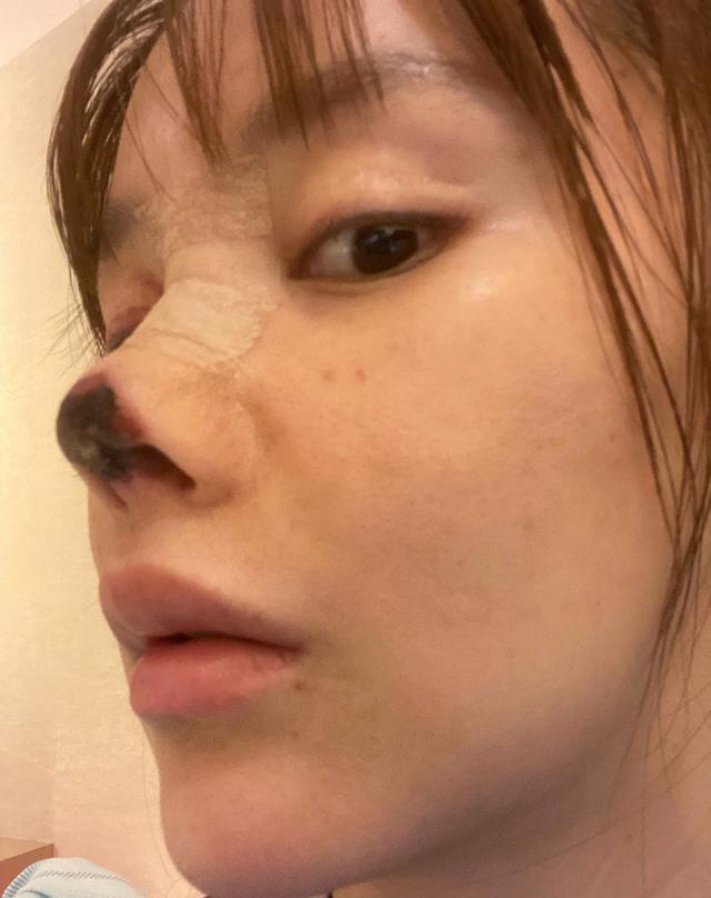 她的鼻尖组织彻底坏死,不仅不能变漂亮,甚至无法恢复到未整形前的状态。