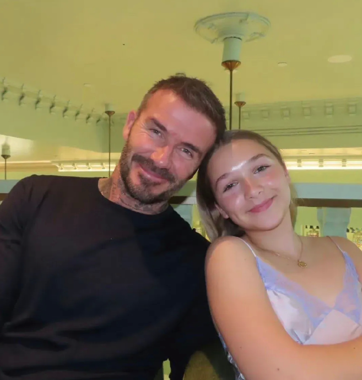 贝克汉姆晒出和女儿的合影,父女俩头挨着头看上去十分亲密。