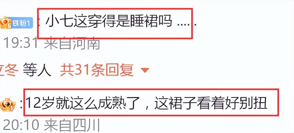 有网友感慨小七穿得蕾丝裙好像睡裙,而且打扮得过于成熟。