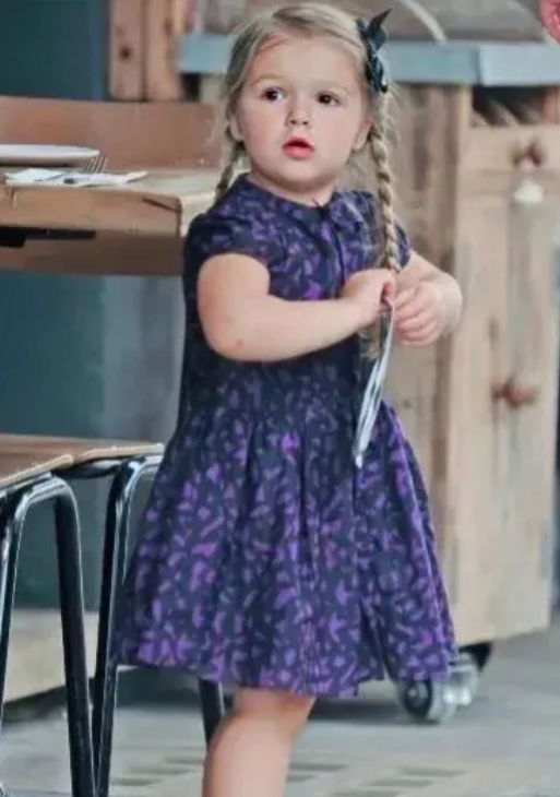当天贝克汉姆穿着黑色T恤,脸上涨得通红,不知是否有小酌几杯;小七穿着紫色的蕾丝吊带裙,她皮肤白里透红,再配上这身打扮,俨然已经是位成熟的大姑娘。