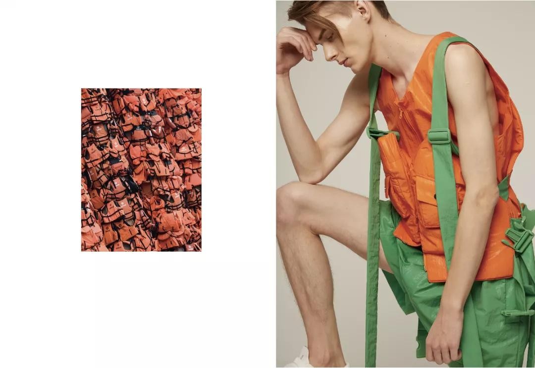 chenpeng 2017SS灵感来源于救生衣,用可漂浮的泡沫粒子代替鹅绒材料,防水面料结合高发泡填充物,来表现身体与外界之间的第二层肌肤。