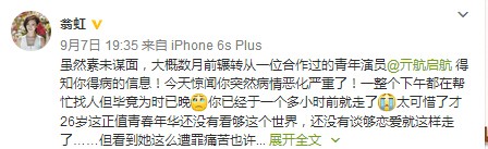 女演员徐婷病逝,包贝尔发博悼念却被骂,网友:就想突出给了点钱