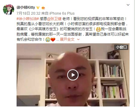 而徐婷的偶像张卫健更是在两个月之前就拍了小视频鼓励徐婷,让她勇敢战胜病魔,徐婷还称等自己康复了一定要当面感谢,希望有机会合作,可惜,再也没有机会了。