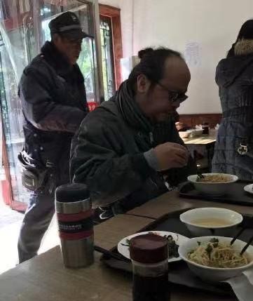 如果不熟悉窦唯的人一定还以为只是平平无奇的就餐路人,谁能想到这是曾经叱咤乐坛、风头无两的摇滚界大佬?