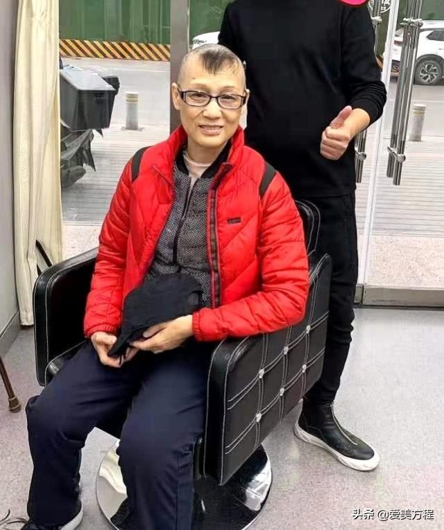 当天穿一件红色的薄款羽绒服,头发因为化疗留的很少很短,但是从面相上看,李建群老师的身体情况还不错,虽然清瘦,但是目光明亮,也能自己出行。