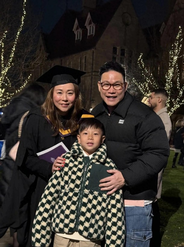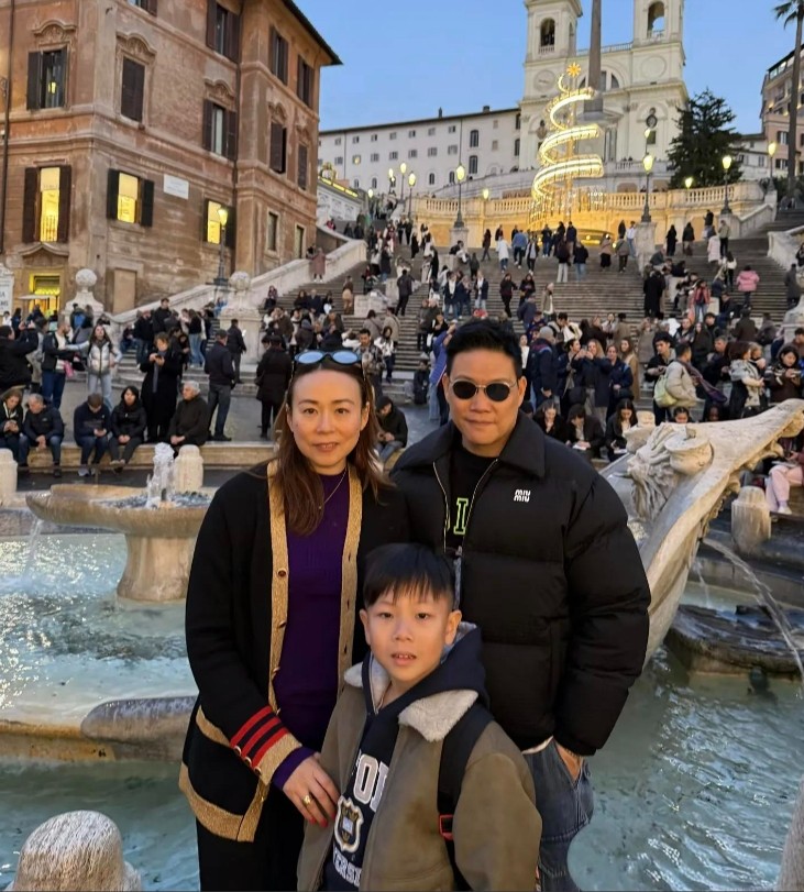 58岁苏永康在餐厅为妻子冯翠珊庆祝生日,8岁儿子更像妈妈!