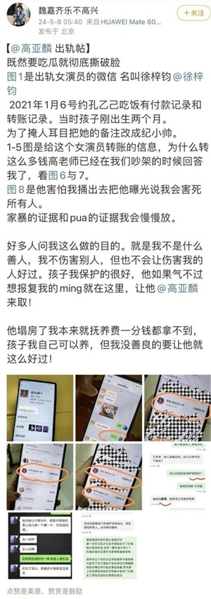 高亚麟与演员时玮于2008年结婚,但据魏嘉透露,两人早已离婚,只是没有对外公布。魏嘉表示,她与高亚麟并未领证结婚,但在高亚麟离婚后,她成为了他的女友,并生有一子。魏嘉还指出,高亚麟在2021年约会徐梓钧,并在孩子出生两个月时给徐梓钧转款。此外,魏嘉还晒出了与高亚麟的分手协议,显示高亚麟在深圳的一处房产登记在女方名下,但房屋的所有权归孩子所有。