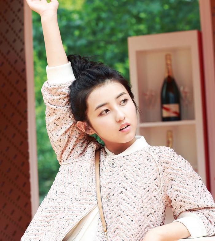 张子枫一身粉色,这套造型把张子枫衬得十分粉嫩