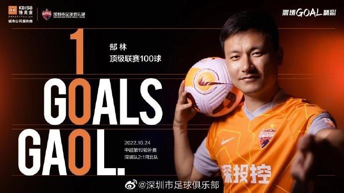 然后就是比赛第16分钟,深圳队边路起球,郜林一脚垫给边路插上的队友,后者横传禁区内被门将鲍亚雄扑了一下,球又落到郜林脚下,直接起左脚的搓射打进死角,比分变成了2-1,深圳队实现了反超。而这个球可以体现郜林的嗅觉,以及第二反应有多快。而这个球也是郜林顶级联赛的100球!