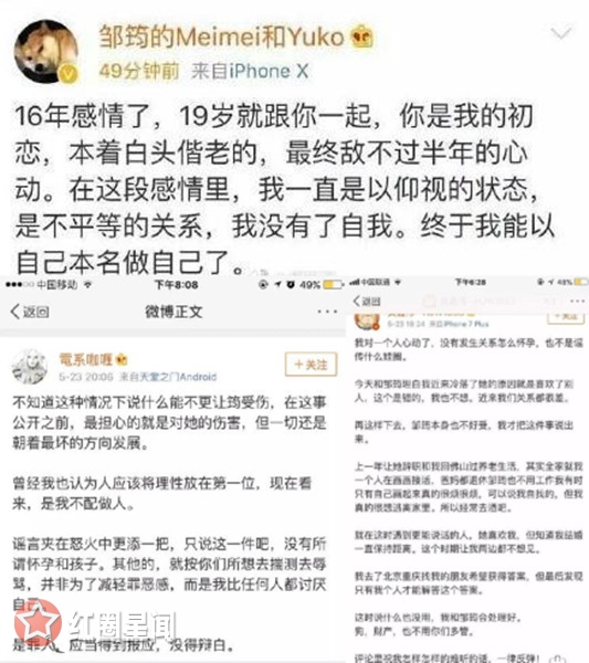 邹筠在微博中表示现在的她终于能做回自己了,网友们对于这句话的解读是邹筠如今对黄嘉伟定然心如死灰,不会再为黄嘉伟而失去自我了,所以二人今后的结果应该就只有离婚这一个选择了吧。