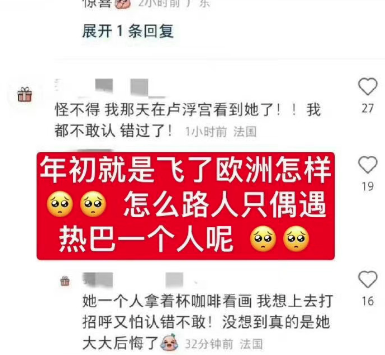 此外,还有网友在法国卢浮宫偶遇迪丽热巴。但迪丽热巴的工作行程中并无法国之旅,可见这是迪丽热巴的私人行程。