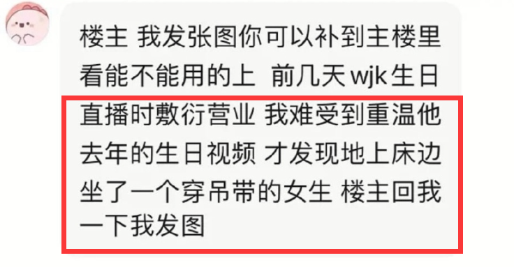 此前,还有眼尖的吃瓜群众发现王俊凯生日直播时,床边坐了一位穿着吊带的女生,女子躲在角落,但身后的玻璃镜却出卖了她。