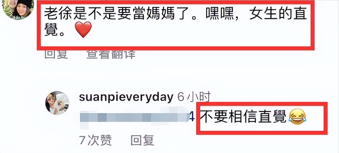 有网友猜测徐静蕾是否要当妈妈了,因为这是“女生的直觉”,徐静蕾则回复对方“不要相信直觉”,侧面否认了当妈的传闻。