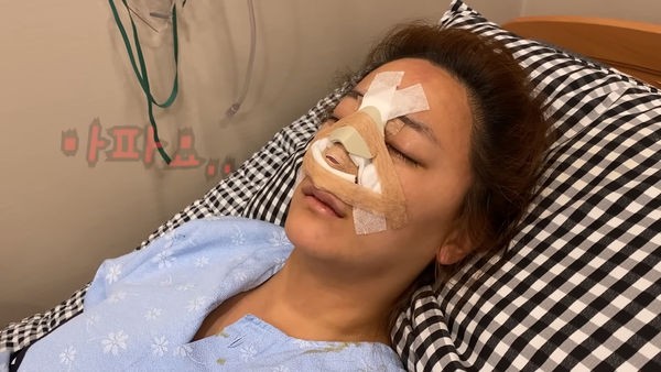 高恩雅动完手术因为鼻子塞住,打呼声相当大。(图/翻摄YouTube/방가네)