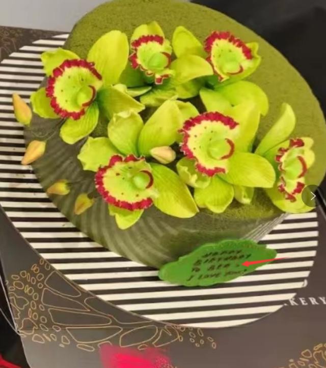 庆生现场摆放着两个生日蛋糕,红色的是是向佐和儿女送给向太的,至于绿色的这个则是向佐专门送给老婆郭碧婷的,上面不仅写着 "HAPPY BIRTHDAY" 还写着郭碧婷的英文名和 "I LOVE YOU",高调表白爱妻。