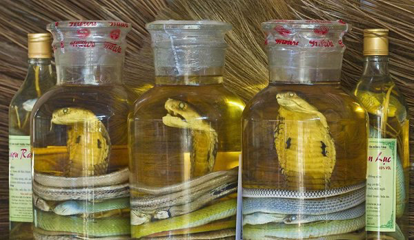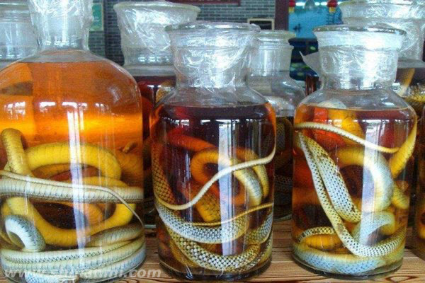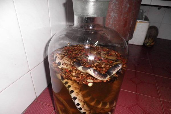 蛇药酒主要是将各种中药和蛇放在一起泡,据说有比较好的祛风效果,现在在中国市场也一直都是比较常见的。不过也有人说,蛇泡酒里面没有死,当然也有人好奇蛇为什么可以在酒里活着,就算死了为什么不腐烂。之前还有蛇泡酒两年后咬死人的传闻,这些都让很多人十分害怕。