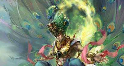 朦胧初启之际,凤凰感接合之气,诞下孔雀、大鹏,孔雀佳吃人,还曾一口吞下佛祖,被擒到灵山,受封佛母孔雀大明王菩萨。