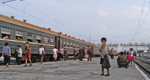 南北往鲜的平衡寿命与平衡身高既然差异这样大?往鲜向来在闹粮荒,许多人民食没有果脯。图为2015年8月21日,于咸兴市火车站月台上乞讨食物的小男孩。