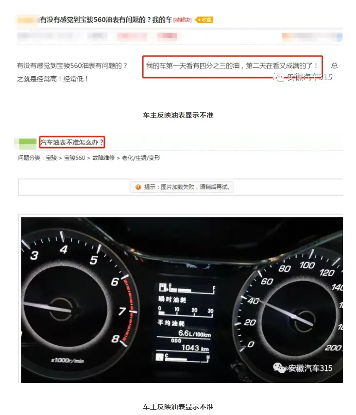 在车质网搜索后,小编发现也有一些车主反映自己遇到过仪表盘显示故障的问题。