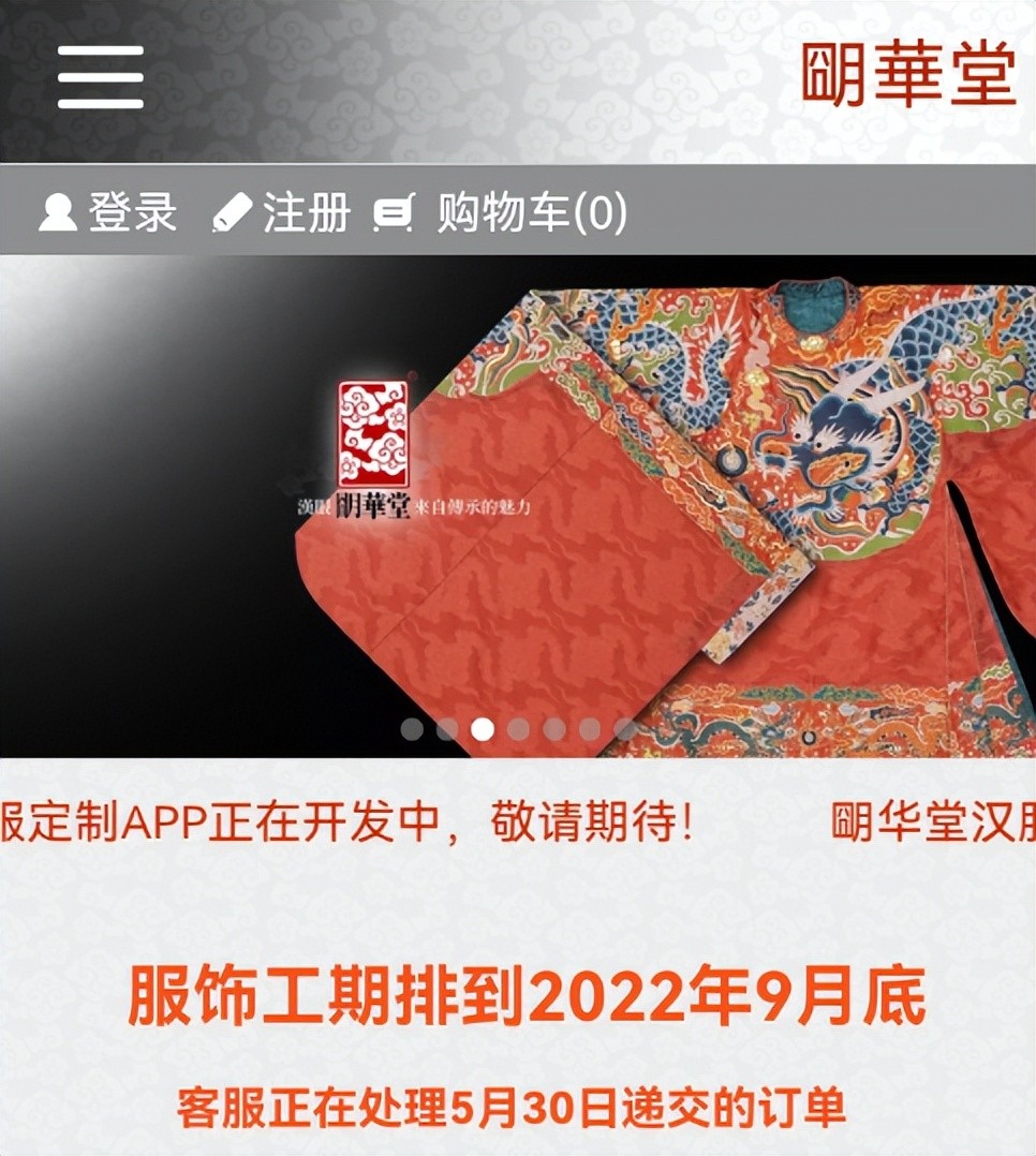 点进官网能看到,目前工期已经排到了今年9月底,连客服都在处理前几天的订单,可见明华堂的生意真的是非常好啊!也正因如此,高昂的定价和巨长的工期让消费者们有了较高的心理期待,为什么在官网定制近半年的汉服难道手里却出现做工不仔细,有些粗糙的现象呢?