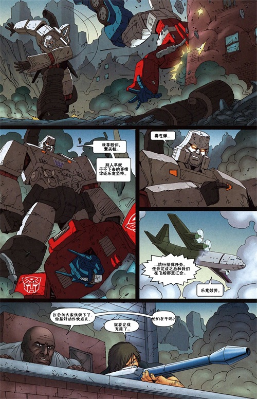 IDW毒气弹也有出场,不过大多是些龙套的戏份,比如导致惊天雷挨揍的那枚核弹就是毒气弹扔的。就不多说了。真人电影里貌似有一集的预告片里有个大飞机变形的镜头,我还以为毒气弹会出场,没想到正片压根就没有,哎,白兴奋了一场。