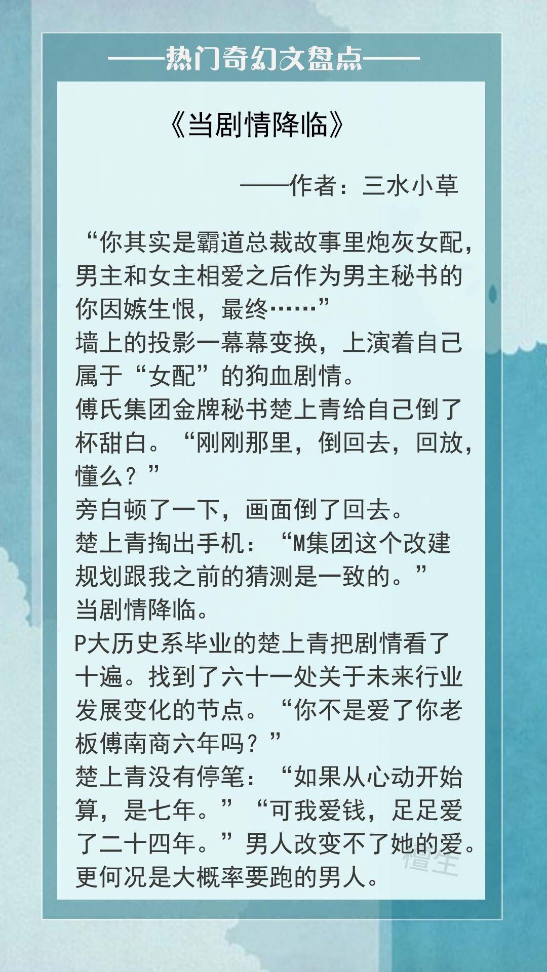 第二本:《当剧情降临》作者:三水小草