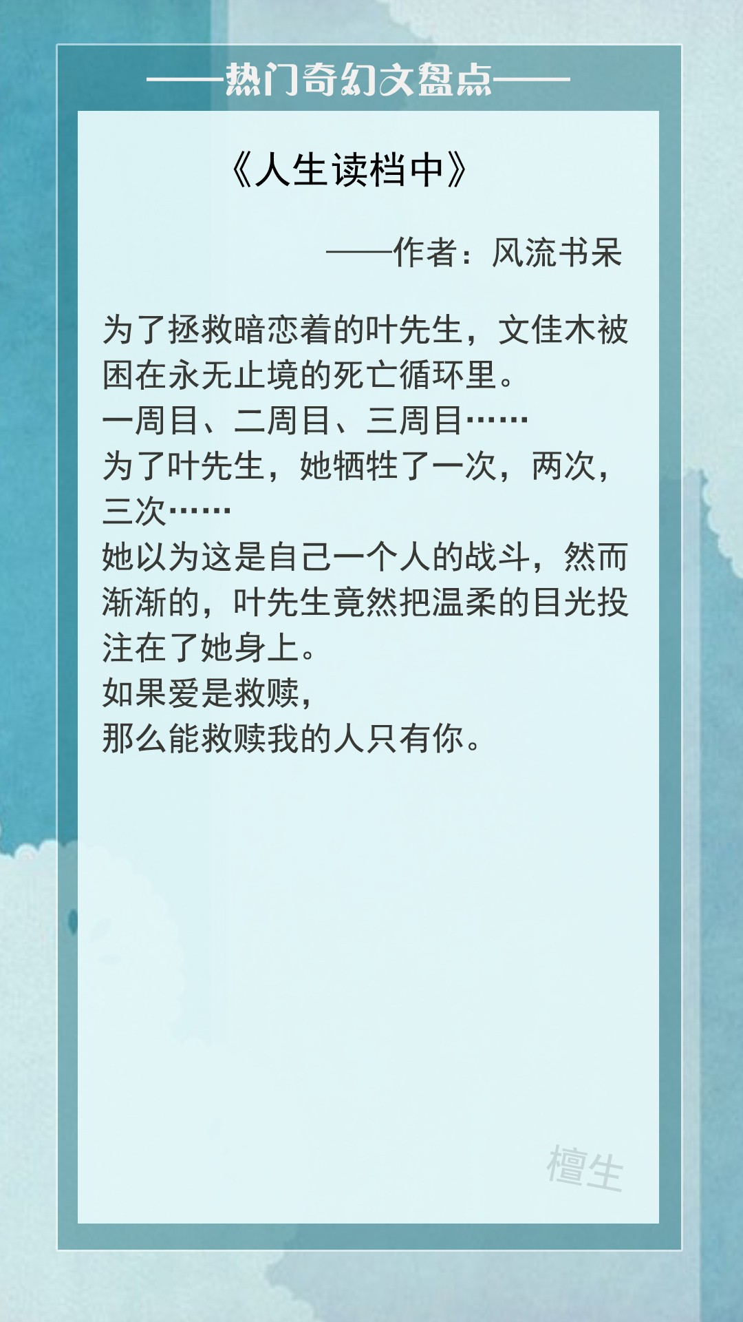 第一本:《人生读档中》作者:风流书呆