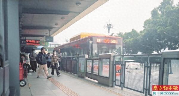非高峰期,BRT站台客流量不高。 实习生 蒋欣蕾 摄