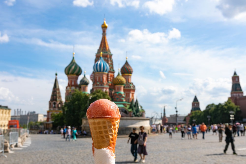 ↑这是7月26日在俄罗斯莫斯科红场拍摄的冰淇淋。新华社记者白雪骐摄