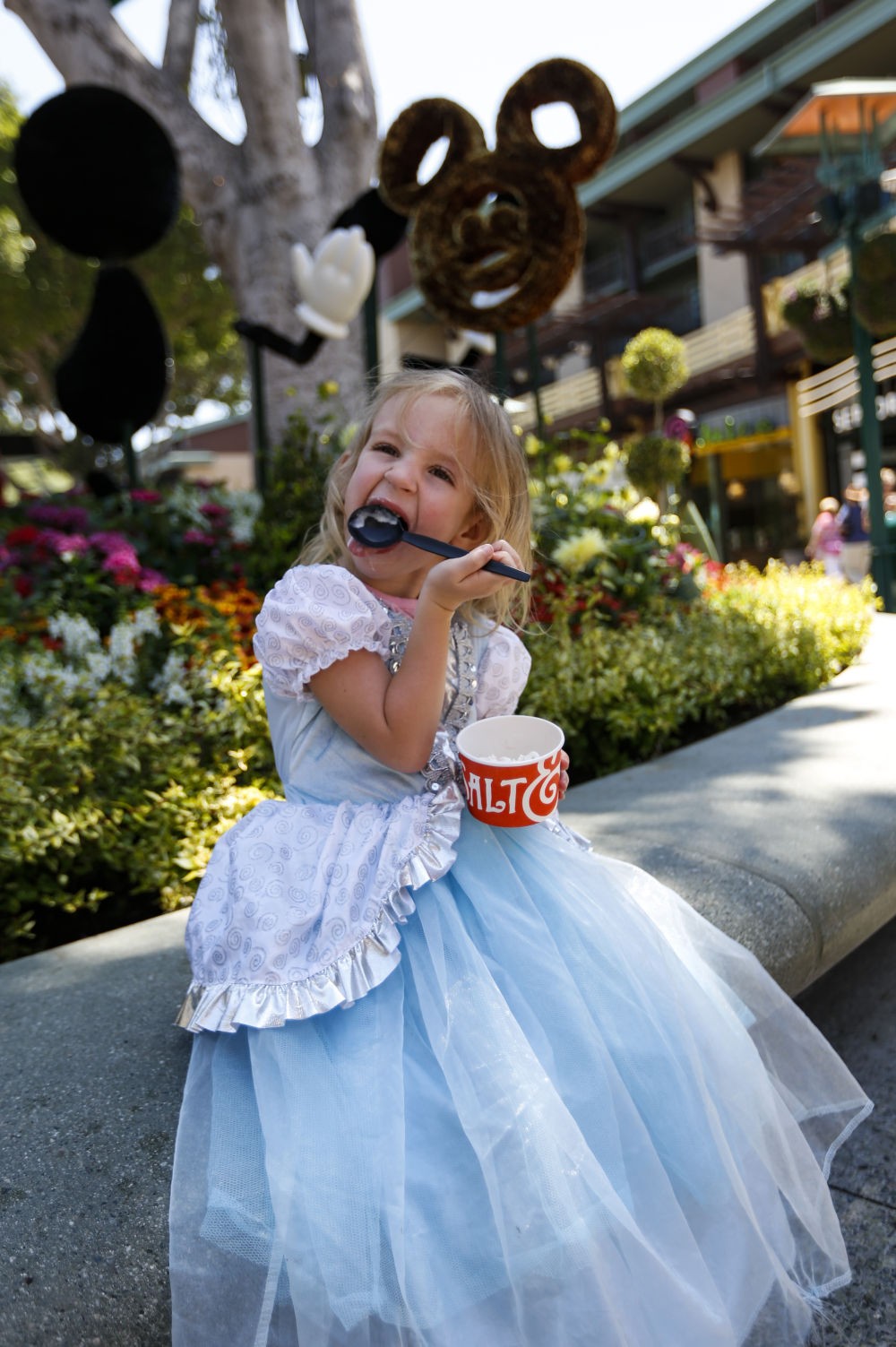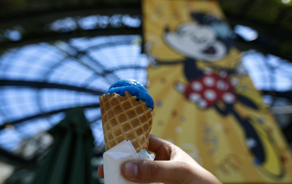 ↑8月1日,一名女孩在美国加利福尼亚州迪士尼乐园享用冰淇淋。新华社记者李颖摄
