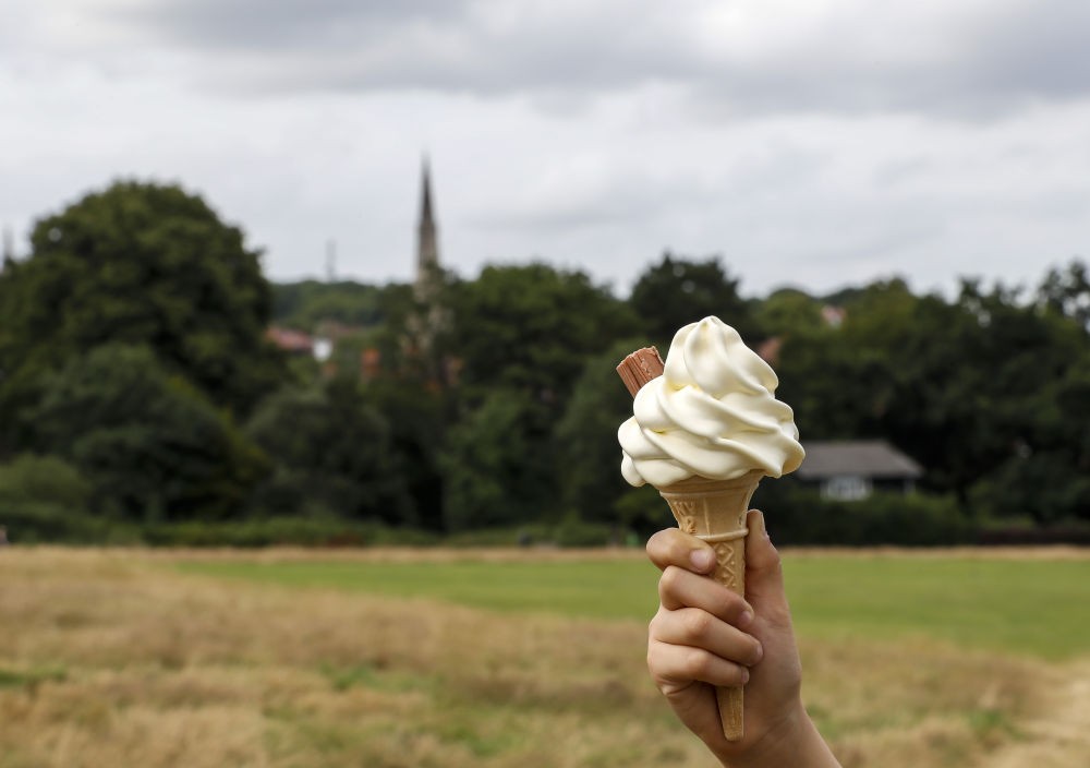 ↑这是7月26日在英国伦敦一处教堂前拍摄的冰淇淋。新华社记者韩岩摄