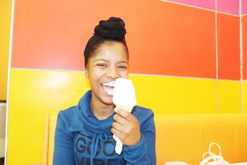 ↑7月21日,在纳米比亚首都温得和克,一名女子享用冰淇淋。位于南半球的纳米比亚正值冬季,但冰淇淋依然受到不少消费者的喜爱。新华社发(沙伦摄)