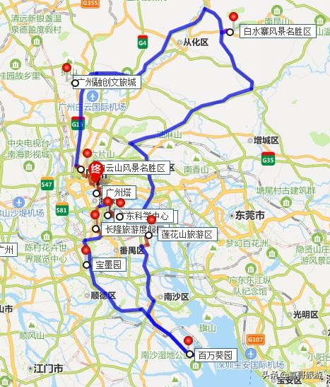 2、广东广州十大景点自驾游行程路线:广东广州-白云山风景名胜区-广州融创文旅城-白水寨风景名胜区-莲花山旅游区-百万葵园-宝墨园-长隆旅游度假区-岭南印象园-广东科学中心-广州塔-广东广州。