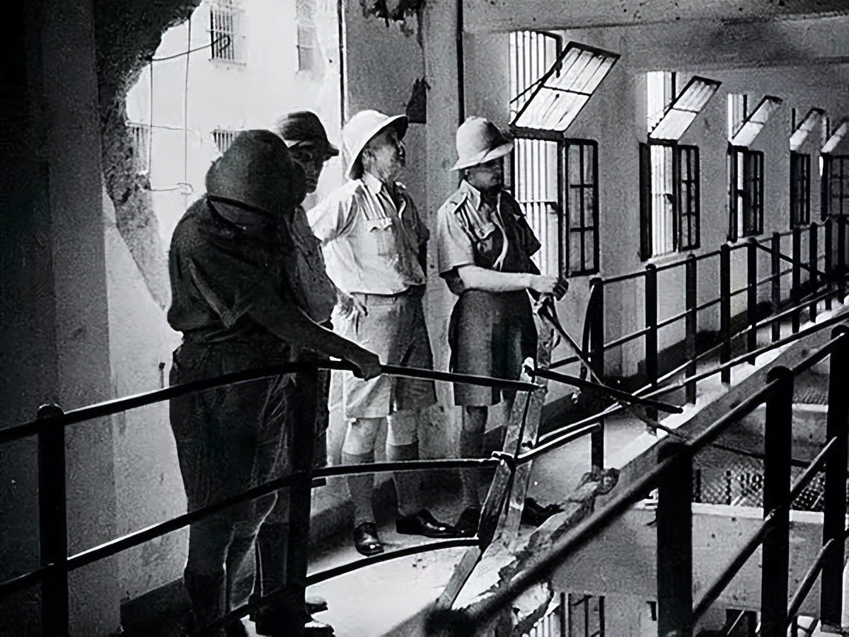 抗战期间提篮桥监狱遭到日军轰炸的楼体外墙
